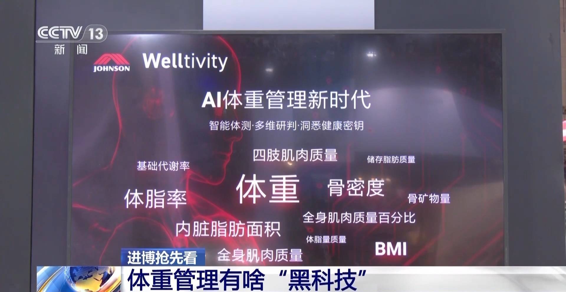 除了控制饮食,适量运动同样重要。在进博会上,众多融合了人工智能等前沿技术的健身设备亮相,帮助人们更科学地管理体重。在这个展台上,展示了一整套体重管理解决方案,通过健康监测、设定体重目标、创建个性化档案来指导用户进行科学的运动。